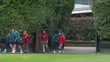 ST ALBANS, ENGLAND - FEBRUARY 20: Arsenal players walk out before a training session at London Colney on February 20, 2024 in St Albans, England. (Footage by Julian Finney/Getty Images)