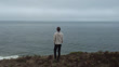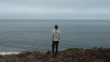 Back view of a young man on a cliff looking out to sea - 4K 影片檔