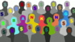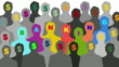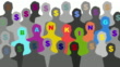 Black and white men silhouettes with a dollar sign blinking and changing color on their heads and along them some multi colored spelling the word BANKING