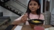 美麗的小女孩享受美味的阿賈科與她的家人, 而微笑著很高興 - 4K 影片檔