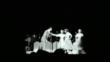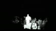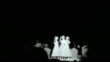 Brief exterior sign for the Roxy Theater. Wide view of a theatrical performance on Broadway, may be a musical, three women singers, possibly the Andrews Sisters, men in top hats and canes, woman with giant flower hats.