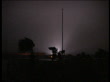 Damaged power cable arcs with bright blue flash in night sky, Hurricane Frances, Fort Pierce, Florida, 4 Sep 2004