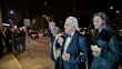 CLEAN: Exterior night time shots of Peter Stringfellow arriving with his wife Bella Wright for the Tory Party Fundraiser Black and White Ball at the Grosvenor House Hotel in Mayfair on 10th February 2015 in London, United Kingdom.N.B. CONTAINS FLASH PHOTOGRAPHY