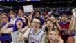 NEW ORLEANS, LOUISIANA - APRIL 4: Kansas Jayhawks fans cheer for the camera before the game against the North Carolina Tar Heels during the 2022 NCAA Men's Basketball Tournament National Championship at Caesars Superdome on April 4, 2022 in New Orleans, Louisiana. (Footage by Chris Graythen/Getty Images)