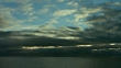 Panning shot across a beautiful cloud-filled sky over the ocean at sunset near Aasiaat, Greenland.