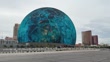 LAS VEGAS, NEVADA - AUGUST 28: Sphere lights up with an advertisement for the Zac Brown Band's four-show engagement that kicks off December 5 alongside the release of the band's seventh album, "Love & Fear," on August 28, 2025 in Las Vegas, Nevada. (Footage by Ethan Miller/Getty Images)