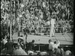 B/W 1951 Sugar Ray Robinson leaving boxing ring as Gerhard Hecht writhes around in pain / Berlin