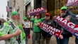 NEW YORK, NEW YORK - MARCH 17: (COMPILATION) Trump supporters with MAGA flags in front of Trump Tower during the St. Patrick's Day Parade on 5th Avenue in Manhattan on March 17, 2025 in New York City. St. Patrick's Day Parade in New York is the oldest and largest parade in the world, dating back to 1763. Traditionally, celebrants march up Fifth Avenue following a painted green line. (Footage by Sandi Bachom/Getty Images)