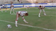 1985 Wide shot - close-up Tampa Bay Bandits player John Brinkman and teammates stretching on football field before game / Orlando, Florida, USA - HD 影片檔