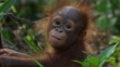CU PAN with baby Orangutan climbing through low branches - 4K 影片檔