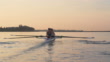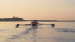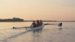 HH front angle view of women' quad rowing team training at sunrise.